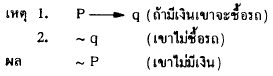7. ถ้ามีเงินเขาจะซื้อรถ แต่เขาไม่ซื้อรถ ฉะนั้น
